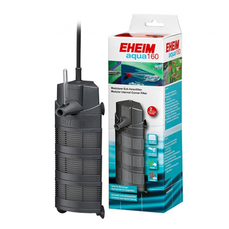 El filtro interior de esquina Eheim Aqua 160 es un sistema de filtración compacto, eficiente y fácil de manejar, desarrollado para acuarios medianos con capacidades aproximadas de entre 60 y 160 litros. Su diseño en formato de esquina permite optimizar el espacio interior del acuario, dejando mayor superficie libre para peces, plantas y decoración.