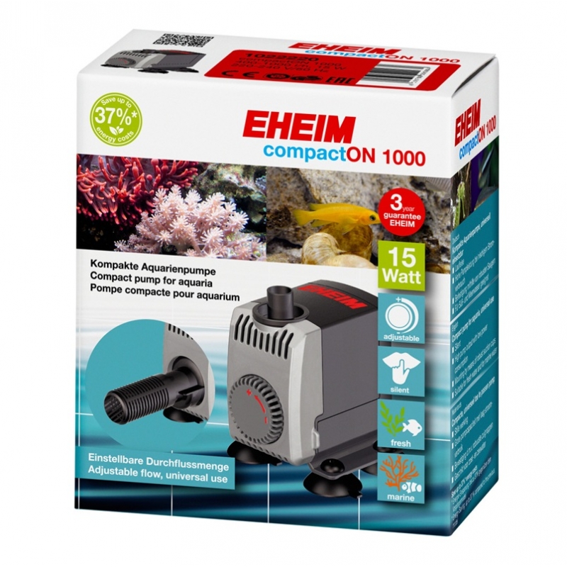 La Eheim CompactON 1000 dispone de caudal regulable, lo que permite ajustar el flujo de agua según las necesidades específicas del acuario, ya sea para sistemas de filtración, circulación, sump o aplicaciones técnicas. Su sistema de fijación mediante ventosas de gran adherencia garantiza una colocación estable y reduce vibraciones durante el funcionamiento.
