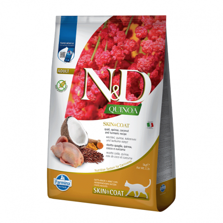 La insuficiente salud de la piel y el pelaje se han convertido en uno de los mayores problemas para los gatos domésticos. N&D Quinoa ha sido diseñado para dar respuesta a las necesidades nutricionales precisas. Está enriquecido con Ômega 6 y Ômega 3, para mantener la buena salud de su piel.