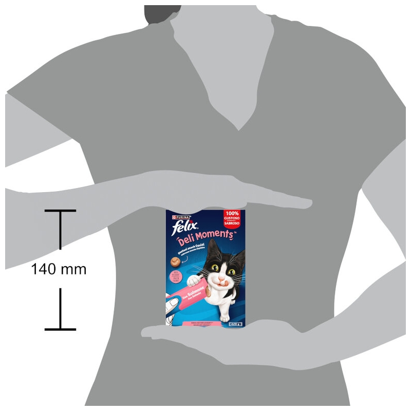 Disfruta de momentos especiales con tu gato gracias al snack líquido con salmón de Felix Deli Moments. Esta golosina cremosa combina sabor intenso de salmón con una textura suave que encanta al paladar felino, siendo ideal para premiar, mimar o simplemente fortalecer vuestro vínculo.