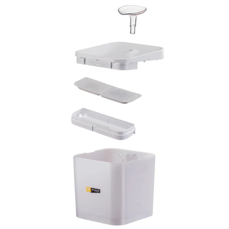 La Fuente Ferplast Ares LED presenta un diseño elegante y funcional, adaptándose perfectamente a espacios reducidos. Con unas dimensiones de 16 x 16 x 20 cm y una capacidad de 2,2 litros, es ideal para hogares con gatos o perros pequeños.