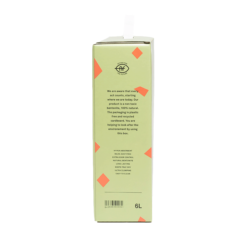 Les litières agglomérantes Blutive se distinguent par leur approche durable. Elles sont fabriquées avec des matériaux respectueux de l'environnement, utilisant du carton recyclé pour l'emballage et éliminant complètement l'utilisation de plastiques. De plus, elles sont exemptes de substances toxiques, prenant soin non seulement de votre chat, mais aussi de l'environnement.
