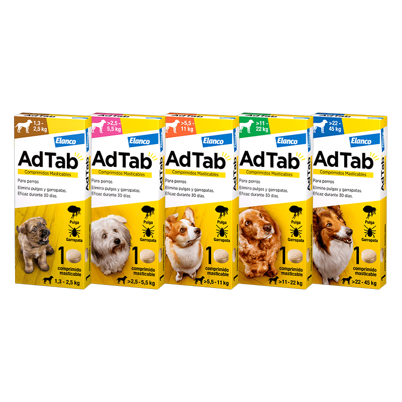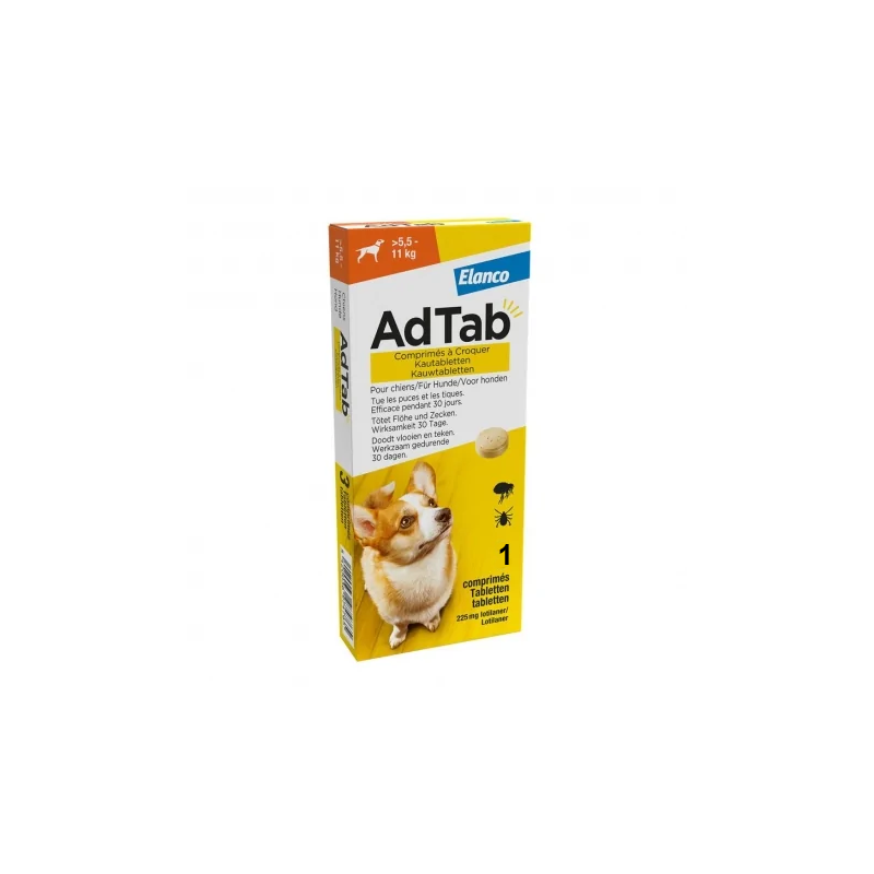 | ADTAB 225 mg COMPRIMÉS À MÂCHER POUR CHIENS (>5,5–11 kg), Boîte avec 1 blister de 1 comprimé | Chiens de >5,5–11 kg | 225 mg Lotilaner |