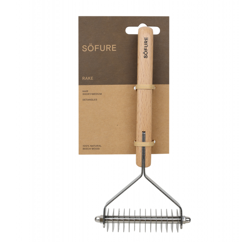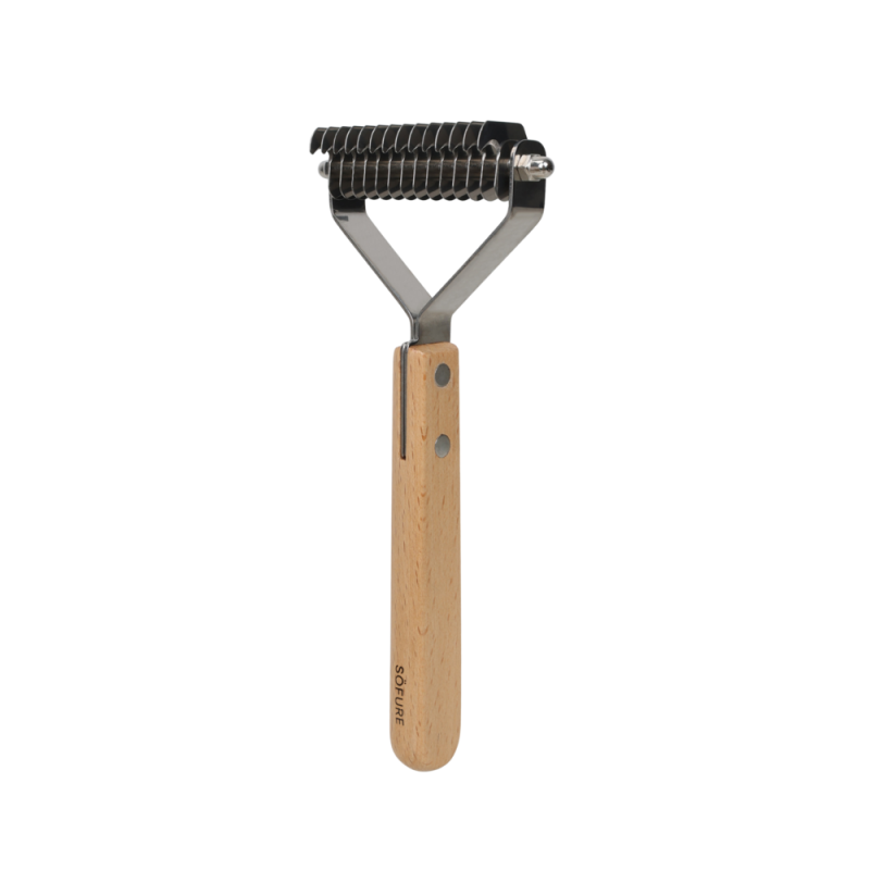 Le râteau Söfure Rake est conçu pour le soin régulier du pelage de chiens et chats. Manche ergonomique en bois de hêtre pour un contrôle optimal. Il facilite l’extraction du sous-poil et le démêlage sans tirer, laissant le pelage uniforme et sain. Idéal pour pelage court et moyen.
