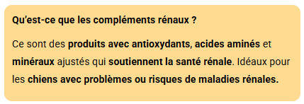 Les compléments rénaux pour chiens sont formulés pour soutenir la fonction rénale et ralentir la progression des maladies rénales. Ils aident à maintenir un équilibre adéquat en minéraux et à protéger les tissus du rein, améliorant le bien-être et prolongeant la qualité de vie de votre animal. Protégez ses reins dès aujourd’hui !