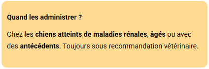 Chez les chiens atteints de maladies rénales, âgés ou avec des antécédents. Toujours sous recommandation vétérinaire.