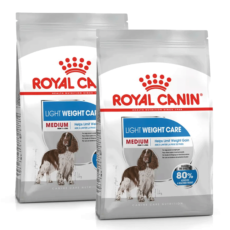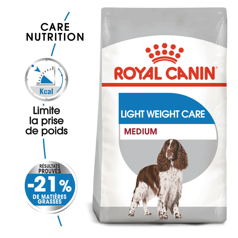 ROYAL CANIN® Medium Light Weight Care is a complete food designed specifically for adult and mature medium-sized dogs weighing between 11 and 25 kg that have a tendency to gain weight. This product has shown proven results, with 80% of dogs achieving a healthier weight, according to an internal Royal Canin study.