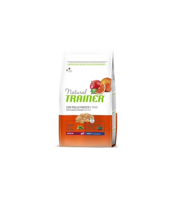 Les croquettes Natural Adult Medium Poulet avec extrait de chicorée et algue spiruline de Trainer est parfait pour contribuer à l'alimentation équilibrée d'un chien adulte de race moyenne. En plus, contient riz pour favoriser des digestions legères.