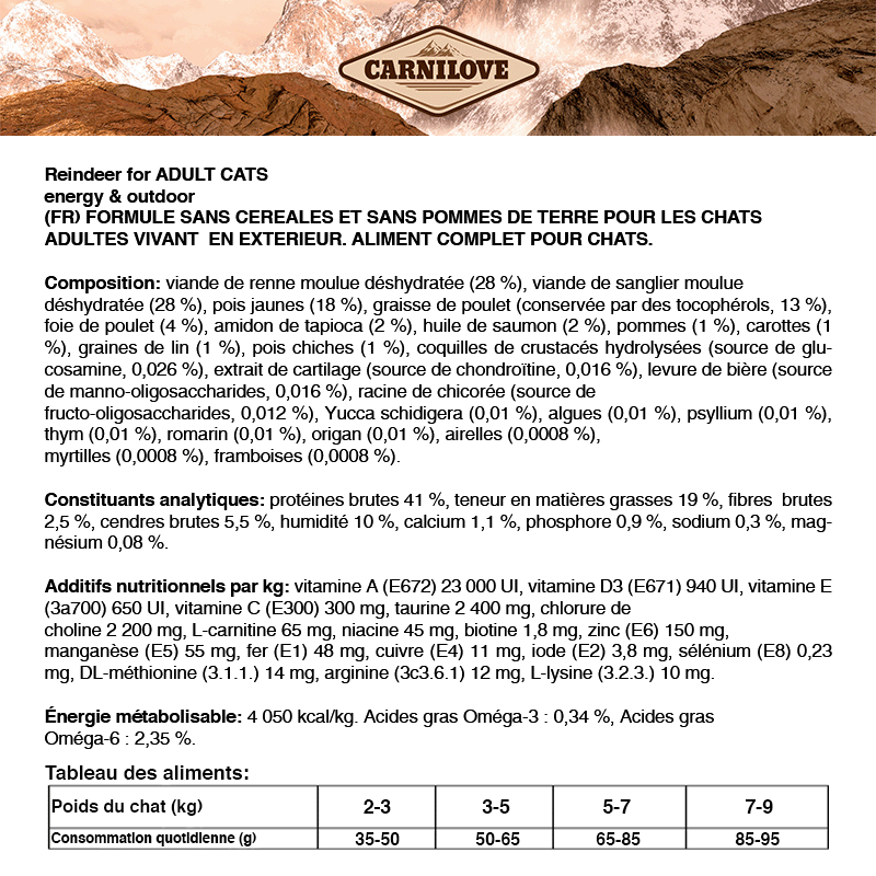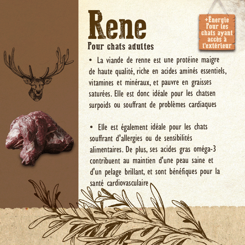 La viande de renne est idéale pour récupérer l'énergie après chaque aventure féline