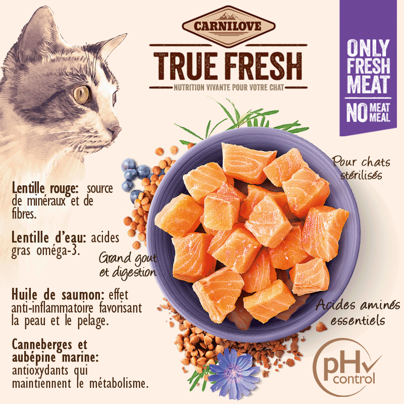 Avec les croquettes Carnilove avec poisson frais, vous garantissez à votre chat une alimentation riche, saine et équilibrée. Faites-lui profiter du meilleur à chaque repas tout en prenant soin de sa santé et de son bonheur !