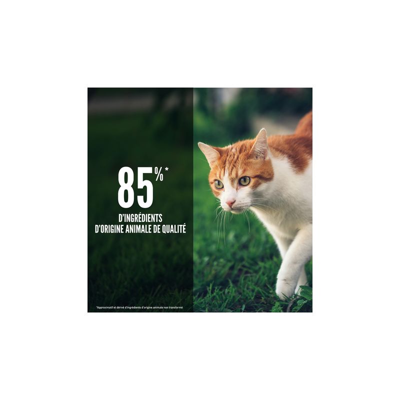 Les 85% d'ingrédients d'origine animale assurent une nutrition équilibrée et savoureuse pour votre félin.