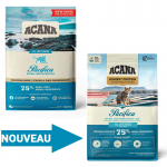 ACANA Pacifica, pour les chats, offre des protéines de poisson en portions complètes et favorise la digestion.