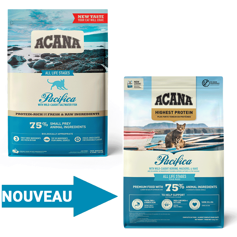ACANA Pacifica soutient la santé optimale des chats, en les nourrissant selon la Mère Nature, favorisant le bien-être félin.