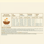 Contenu calorique (calculé) : Énergie métabolisable 3.930 kcal/kg (472 kcal par tasse de 250 ml/120 g), avec 38 % de protéines, 23 % de glucides et 39 % de graisses.
