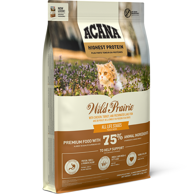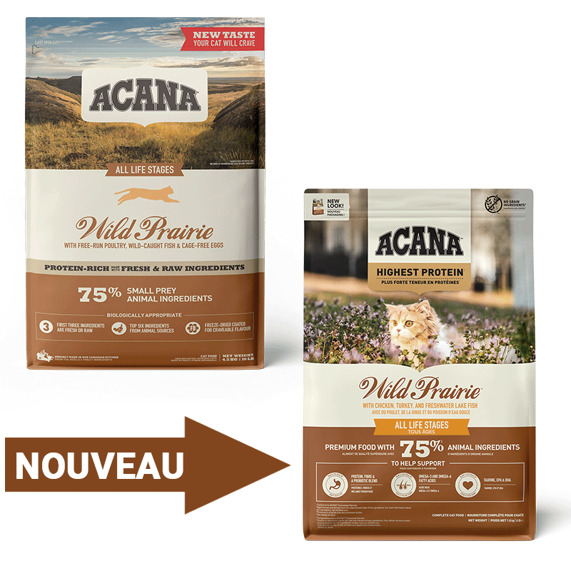 Les nutriments de l'huile de saumon amélioreront également la réponse immunitaire de votre chat. Cette alimentation contribue également à maintenir un système digestif sain et un pelage brillant grâce à un mélange supérieur de prébiotiques et de probiotiques. Nourrir votre chat avec Acana Wild Prairie est un excellent moyen de répondre aux besoins nutritionnels élevés de votre chat.