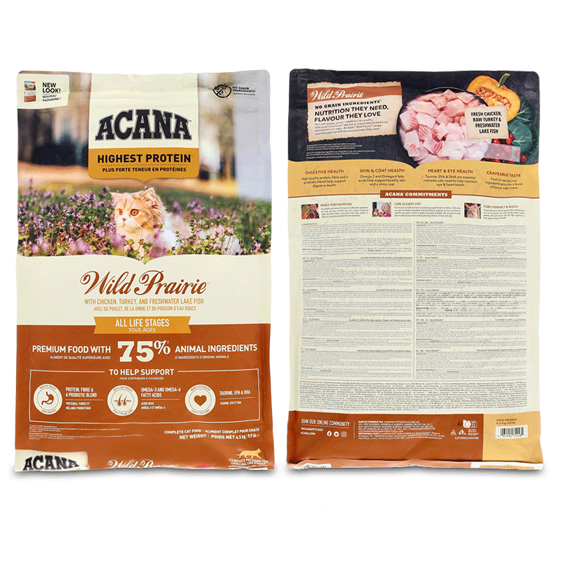 Acana Wild Prairie est une alimentation haut de gamme pour chats qui se targue d'offrir la meilleure qualité pour votre animal. Cette nourriture pour chats est axée sur la fourniture des meilleurs nutriments grâce à ses ingrédients exquis. Le goût de cette nourriture est incroyable car elle contient de nombreuses sources de viande, la rendant irrésistible pour les chatons. Cette alimentation équilibrée comprend du canard du Canada, du tétras, de la perchaude, de la sole, de la truite et des sardines pour fournir à votre chat la bonne quantité de protéines d'origine animale. De plus, elle contient également une sélection naturelle de fruits, de légumes et de baies pour compléter son alimentation.