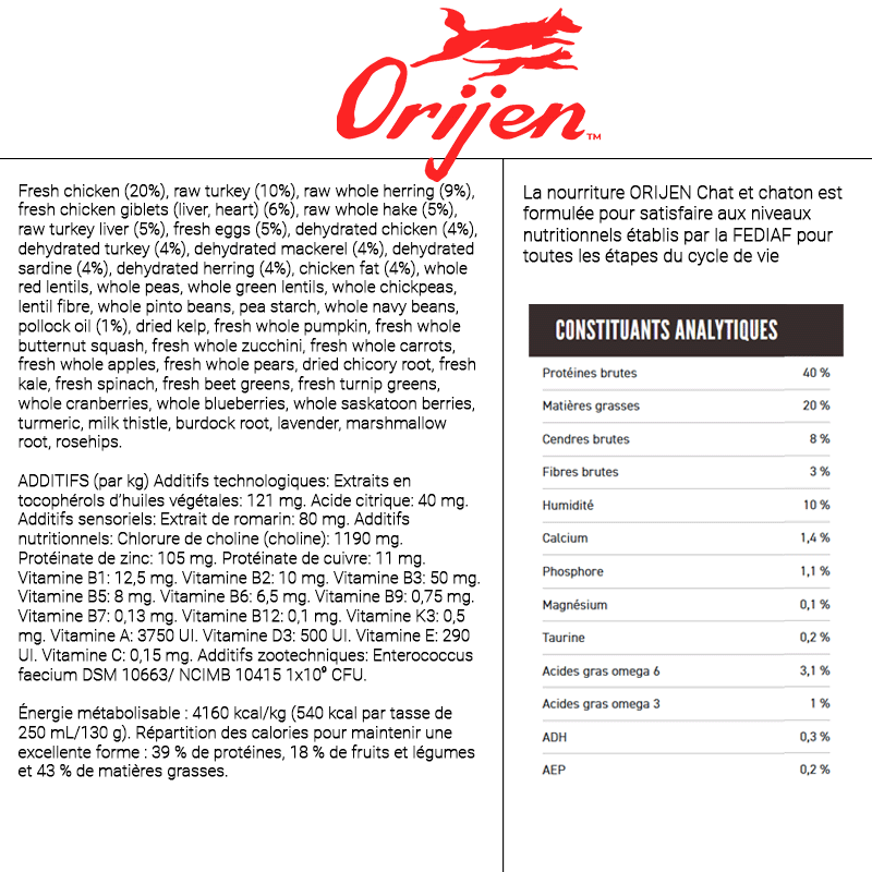 ORIJEN™ Original Cat: Alimentation biologiquement appropriée pour les chats de tous âges et de toutes races.