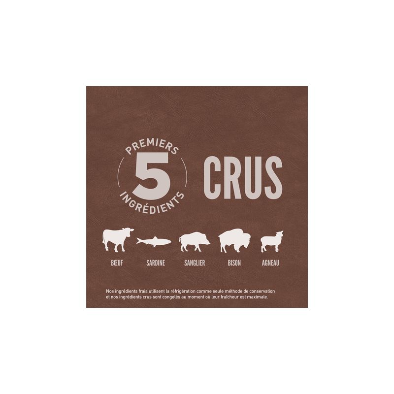 Ces croquettes exceptionnelles pour chats, ORIJEN™ Regional Red™, sont composées d'ingrédients de haute qualité tels que de la viande de bœuf crue, de la sardine entière, du sanglier, du bison et de l'agneau. Elles offrent une nutrition inégalée, avec un impressionnant 85 % d'ingrédients d'origine animale, y compris de la viande et du poisson, des organes et des os. La formule est enrichie d'un irrésistible revêtement lyophilisé qui ajoute une saveur délicieuse.