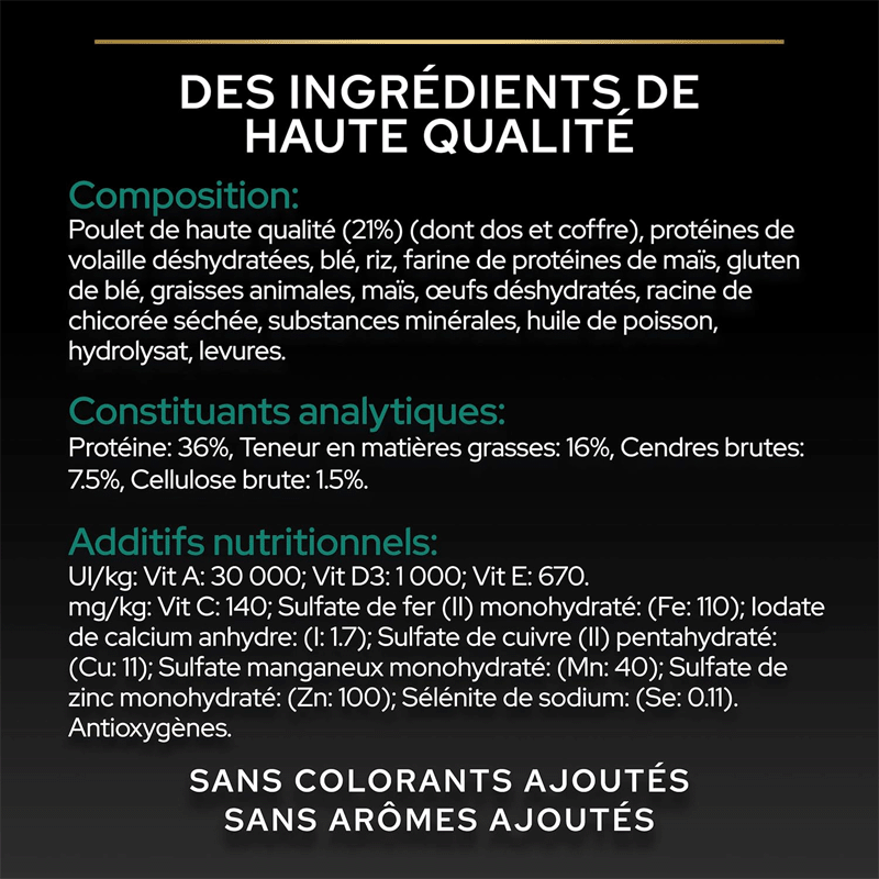 PURINA® PRO PLAN® Adult 1+ RENAL PLUS est un choix exceptionnel pour les propriétaires de chats adultes qui souhaitent offrir une nutrition de qualité supérieure et des soins complets à leurs animaux. Cette nourriture se distingue par la présence du poulet comme ingrédient principal, garantissant ainsi une source de protéines de haute qualité et une saveur que les chats adorent.