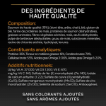Promotion d'une digestion saine : L'inclusion de racine de chicorée, qui apporte de l'inuline avec des propriétés prébiotiques, favorise un environnement intestinal sain, facilitant une digestion efficace. Les protéines et les glucides hautement digestibles assurent une assimilation optimale des nutriments.