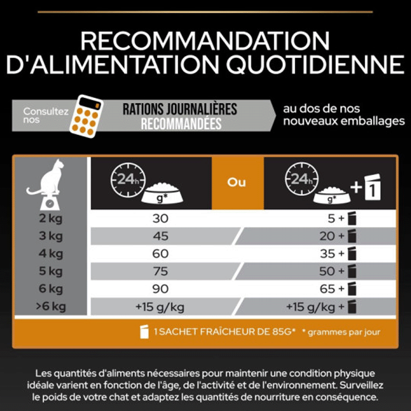 | 6 kg | 80 g | 60 g + nourriture humide |