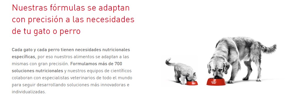 En Royal Canin prestamos atención a las necesidades únicas de los gatos y los perros. Esta obsesión por el detalle es lo que nos permite ofrecer una nutrición precisa, eficaz y adecuada; y ayudarles a dar lo mejor de sí mismos, tanto si son gatos y cachorros que necesitan leche, como mascotas adultas más sensibles con problemas digestivos. Colaboramos con destacados veterinarios y expertos científicos en alimentación y comportamiento, y mantenemos un contacto recurrente con los propietarios de mascotas para escuchar su feedback.