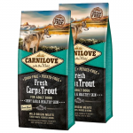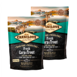 Les croquettes Carnilove Fresh à la carpe et à la truite sont une alimentation naturelle, sans céréales ni pommes de terre, pour les chiens adultes qui veille non seulement à leur condition physique, mais qui protège également leur santé cardiovasculaire et nourrit leur peau.