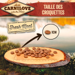 Carnilove se concentre sur la vitalité et le bien-être des chiens et des chats ; nous proposons un large choix de sources de protéines de qualité supérieure, inspirées de l'alimentation naturelle des animaux. Nos gammes incluent des ingrédients soigneusement sélectionnés tels que le renne, le canard, le faisan, la dinde, l'agneau, le sanglier et le saumon, conçus pour imiter la composition des proies capturées dans la nature, fournissant ainsi les acides aminés essentiels dont ils ont besoin. De plus, nous complétons ces ingrédients avec des fruits sauvages, des légumes frais, des baies sauvages et des herbes, riches en vitamines naturelles, en antioxydants et en autres nutriments essentiels pour une santé optimale.