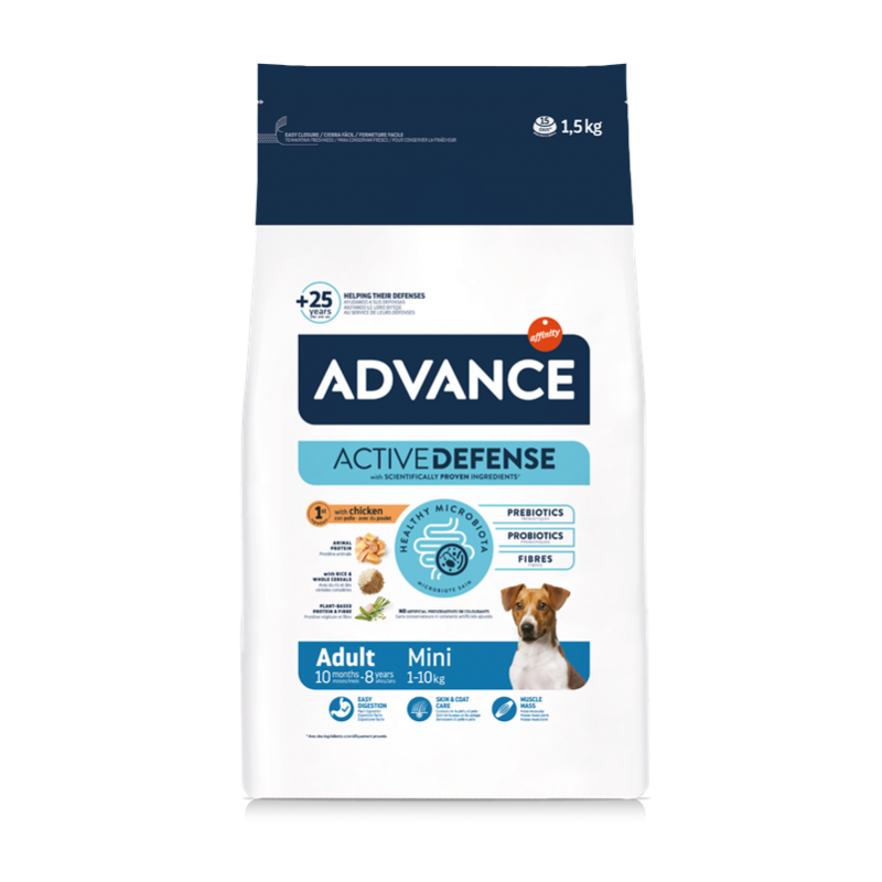 La croquette de taille adaptée garantit que chaque bouchée est facilement manipulable par les mâchoires des petits chiens, assurant une expérience alimentaire confortable et agréable. Avec Advance Adult Mini, vous n'offrez pas seulement une alimentation délicieuse, mais aussi un soutien complet pour la vitalité et le bien-être de votre fidèle compagnon de petite taille.