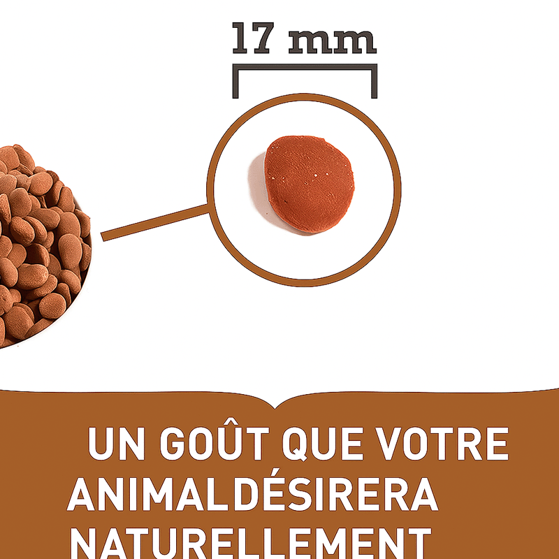 Contenu calorique (calculé) : Énergie métabolisable 3375 kcal/kg (405 kcal par tasse de 250 ml/120 g).