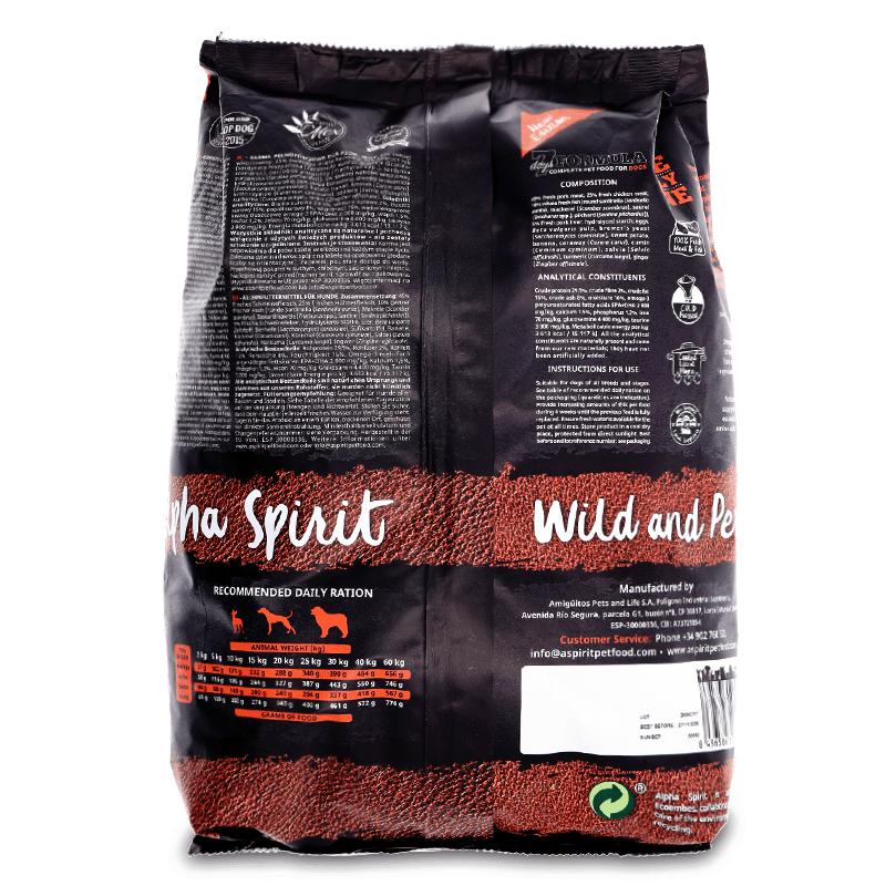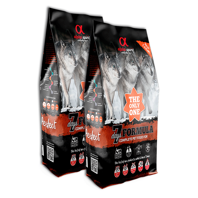 Croquettes sèches Alpha Spirit formule 7 jours de 12 kg avec recette de viande et de poisson frais pour les chiens adultes exigeants et avec des intolérances alimentaires, car sa formulation est faite avec des ingrédients 100% naturels. Élaboré à base de poisson et de viande fraîche de la meilleure qualité. Sans céréales, sans gluten, sans matériaux déshydratés, ni farines de viande. Chaque bouchée est pressée à froid, non extrudée, riche en nutriments essentiels tels que l'oméga 3 et l'oméga 6, la biotine, la levure de bière, le fer naturel et les antioxydants qui protègent le système immunitaire.