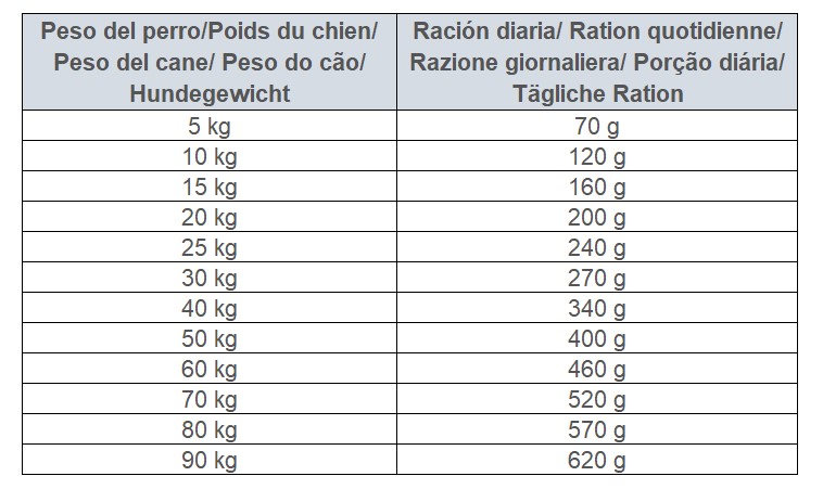 3 900 kcal/kg. Omega 3 : 0,33 %, Omega 6 : 2,34 %.