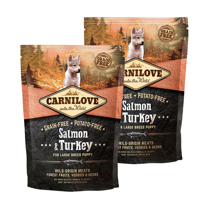 La nourriture pour chiots Carnilove Puppy Large au saumon et à la dinde est spécialement formulée pour répondre aux besoins spécifiques de votre chiot, afin qu'il grandisse fort et en bonne santé.
