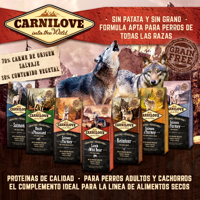 Carnilove se concentre sur la vitalité et le bien-être des chiens et des chats ; nous proposons une large sélection de sources de protéines de qualité supérieure, inspirées de l'alimentation naturelle des animaux. Nos gammes incluent des ingrédients soigneusement sélectionnés tels que le renne, le canard, le faisan, le pavo, l'agneau, le sanglier et le saumon, conçus pour imiter la composition des proies capturées dans la nature, fournissant les acides aminés essentiels dont ils ont besoin. De plus, nous complétons ces ingrédients avec des fruits sauvages, des légumes frais, des baies sauvages et des herbes, riches en vitamines naturelles, en antioxydants et en autres nutriments essentiels pour une santé optimale.