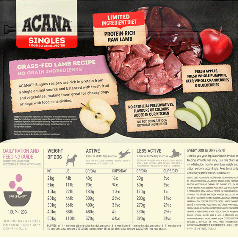 Alimentation d'origine inégalée : L'agneau élevé en pâturage d'Acana est soigneusement sélectionné pour sa salubrité et son goût exceptionnel.
