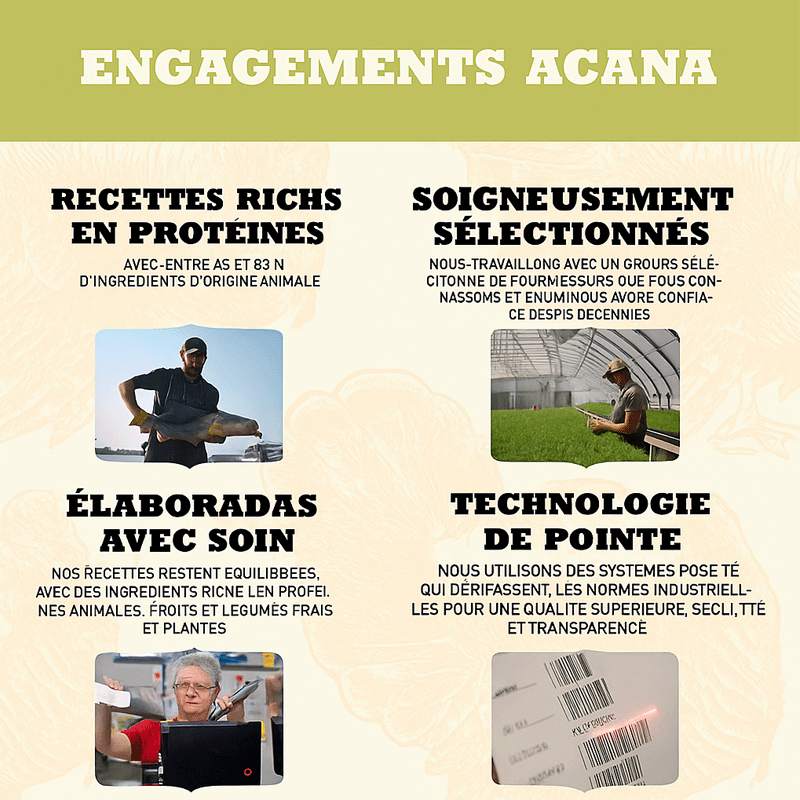 Cette alimentation favorise la santé digestive, prend soin du cœur et des yeux, et offre un pelage brillant grâce à des acides gras oméga-3 et oméga-6 équilibrés. Avec ACANA, vous offrez à votre chien une recette qui le gardera heureux, en bonne santé et plein de vitalité.