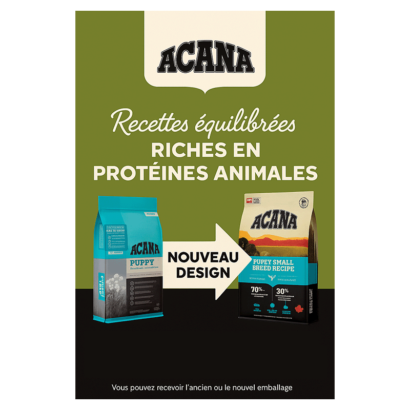 Initiez votre chiot sur le chemin d'une vie saine avec la recette pour chiots de petite race Acana ! Offrez les meilleures recettes pour les petits chiens qui favorisent leur santé et leur bien-être. Cette nourriture pour animaux est spécialement formulée pour répondre aux besoins nutritionnels des chiots de petite taille. Elle contient tous les nutriments dont les petits chiens énergiques ont besoin pour une santé optimale.