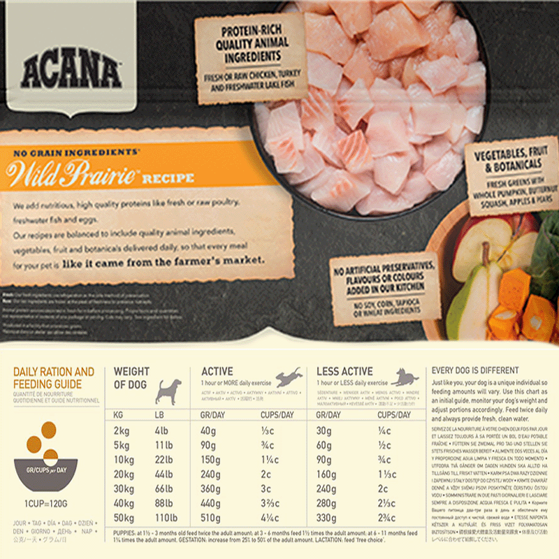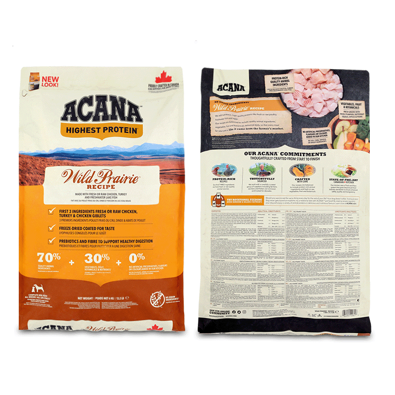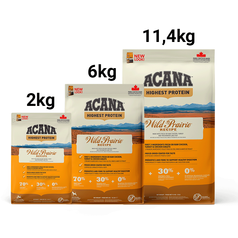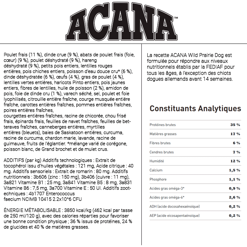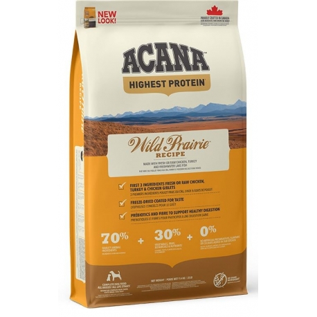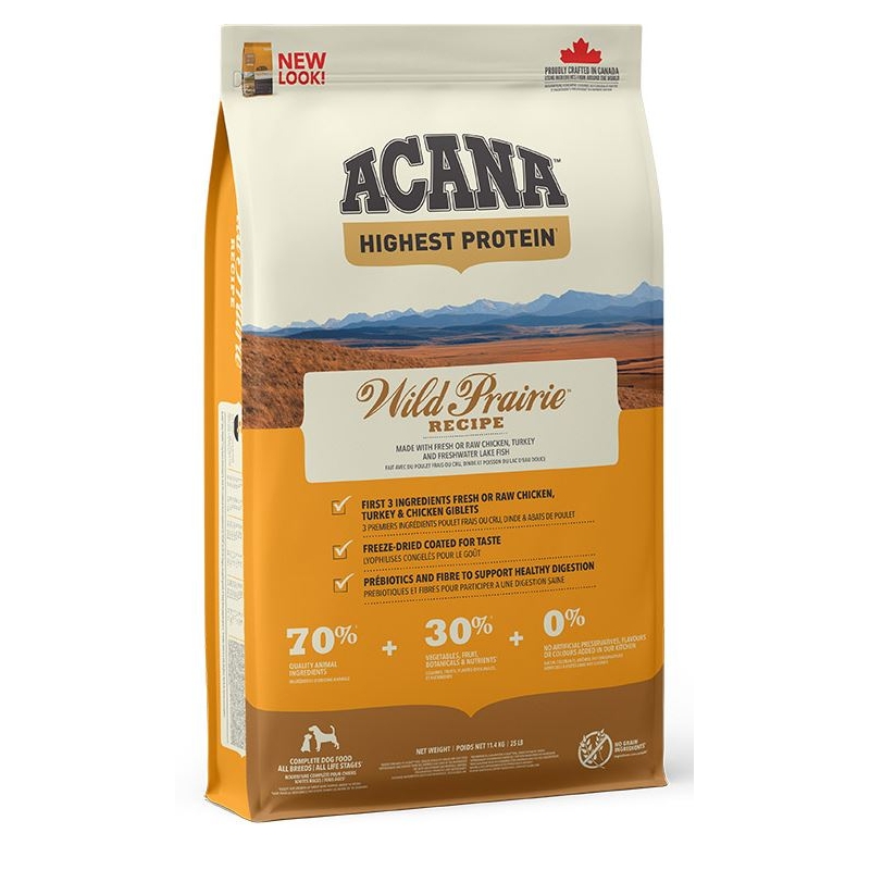 Wild Prairie d'Acana est une nourriture formulée avec des ingrédients complets pour répondre aux besoins nutritionnels uniques des chiens. Elle est crue, tout comme la nourriture crue, de sorte que les nutriments sont mieux préservés.