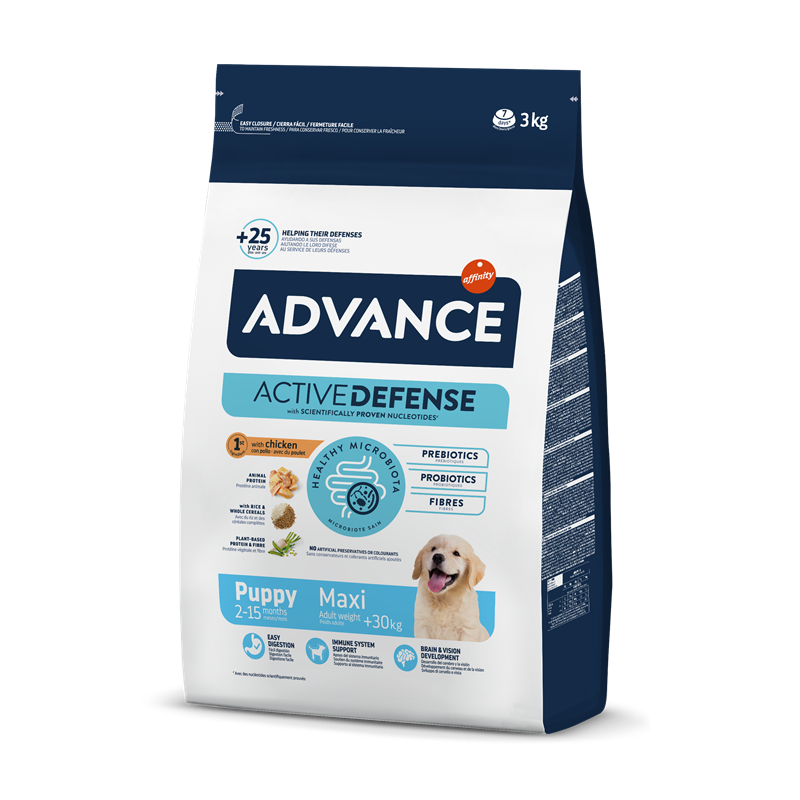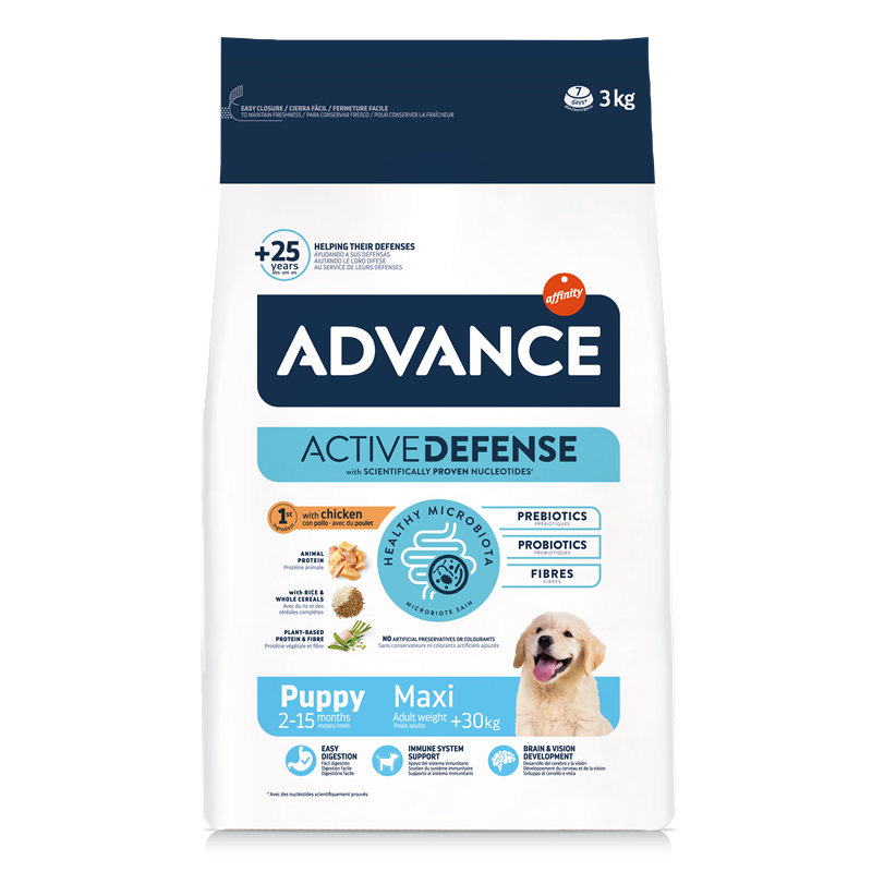 En plus de son accent sur le développement physique, Advance Puppy Maxi intègre des nucléotides pour renforcer le système immunitaire des chiots. Cette inclusion clé contribue à maintenir une réponse immunitaire naturelle, fournissant aux chiots la résistance nécessaire pour faire face aux défis environnementaux dès le début.