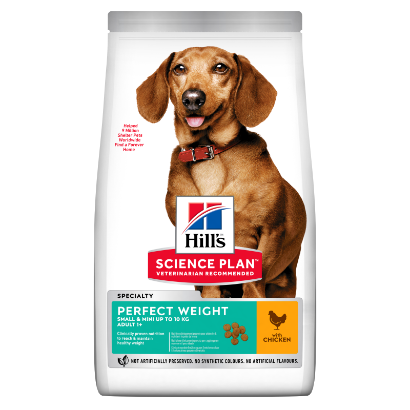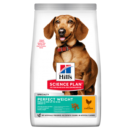 Hill's Science Plan Perfect Weight Small & Mini au poulet est une alimentation pour chiens adultes de petite taille ayant tendance à l'embonpoint.