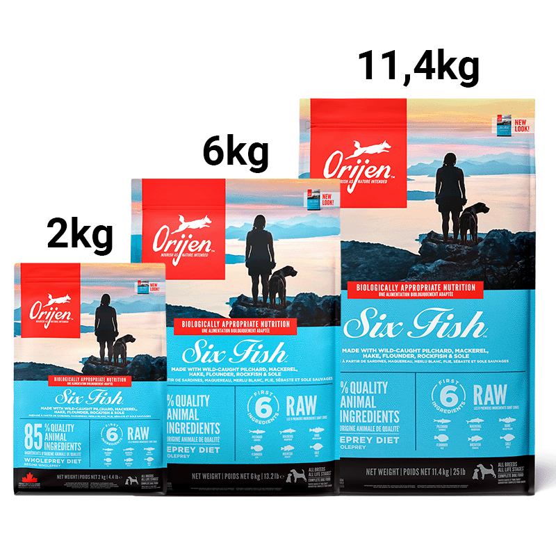 Ces croquettes exceptionnelles pour chiens, ORIJEN™ Six Fish™, sont une source de nutrition de qualité supérieure. Elles offrent un régime riche en protéines essentielles à la santé de votre chien, soutenu par des ingrédients de poisson frais de haute qualité tels que la sardine, le maquereau, le merlu, la plie, le poisson de roche et le carrelet. Cette formule est basée sur l'alimentation authentique de la proie entière, ce qui signifie qu'elle comprend les parties les plus nutritives et savoureuses du poisson, comme la viande et les arêtes, imitant l'alimentation ancestrale des chiens.