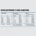 | Poids (kg) | Chien peu actif | Chien très actif |