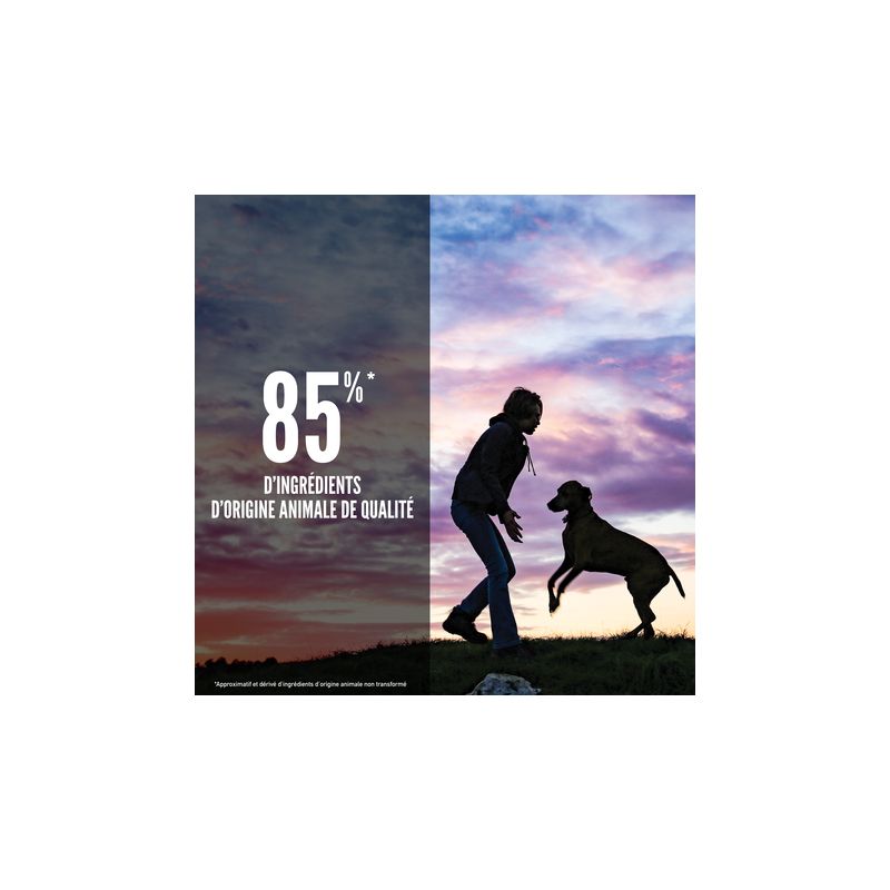 Formule sans conservateurs, basée sur la nature biologique du chien, avec 80 % de viandes fraîches locales.