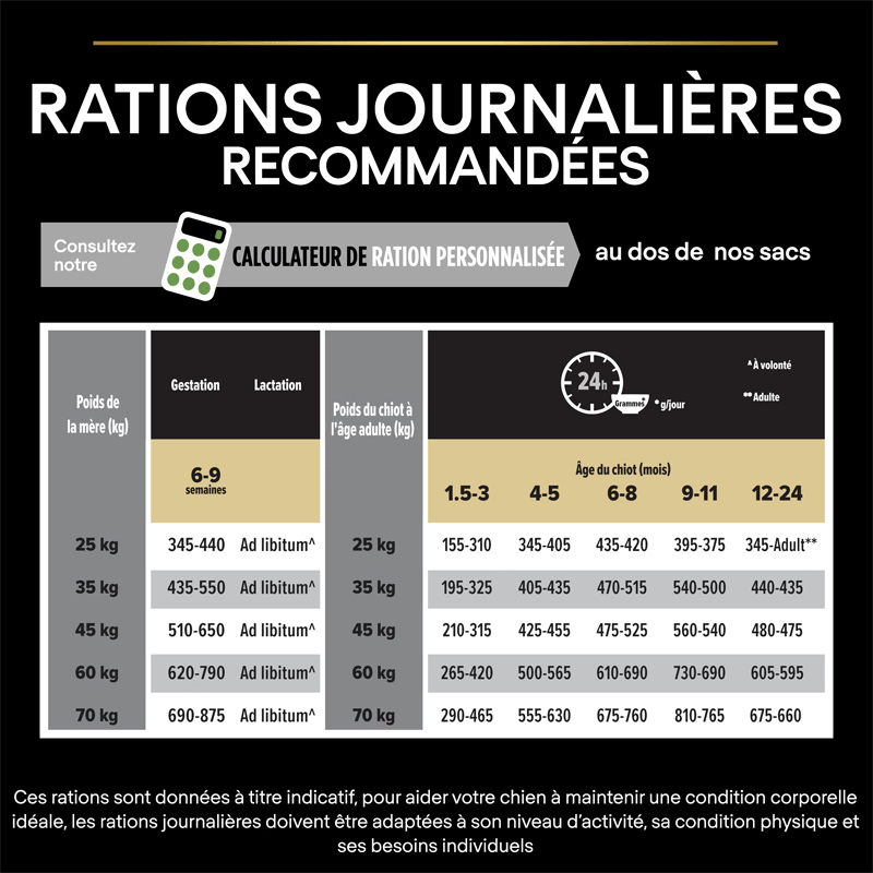 Adapté aux Chiennes Gestantes ou Allaitantes : Non seulement idéal pour les chiots, mais également adapté aux chiennes gestantes ou allaitantes, ce qui en fait un choix polyvalent pour votre animal de compagnie.