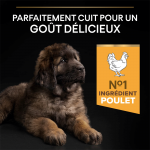 Haute Teneur en Poulet : L'ingrédient numéro un de PURINA® PRO PLAN® Puppy Large Robust Healthy Start est le poulet, une source de protéine de haute qualité qui favorise une croissance optimale chez les chiots de grandes races au physique robuste.