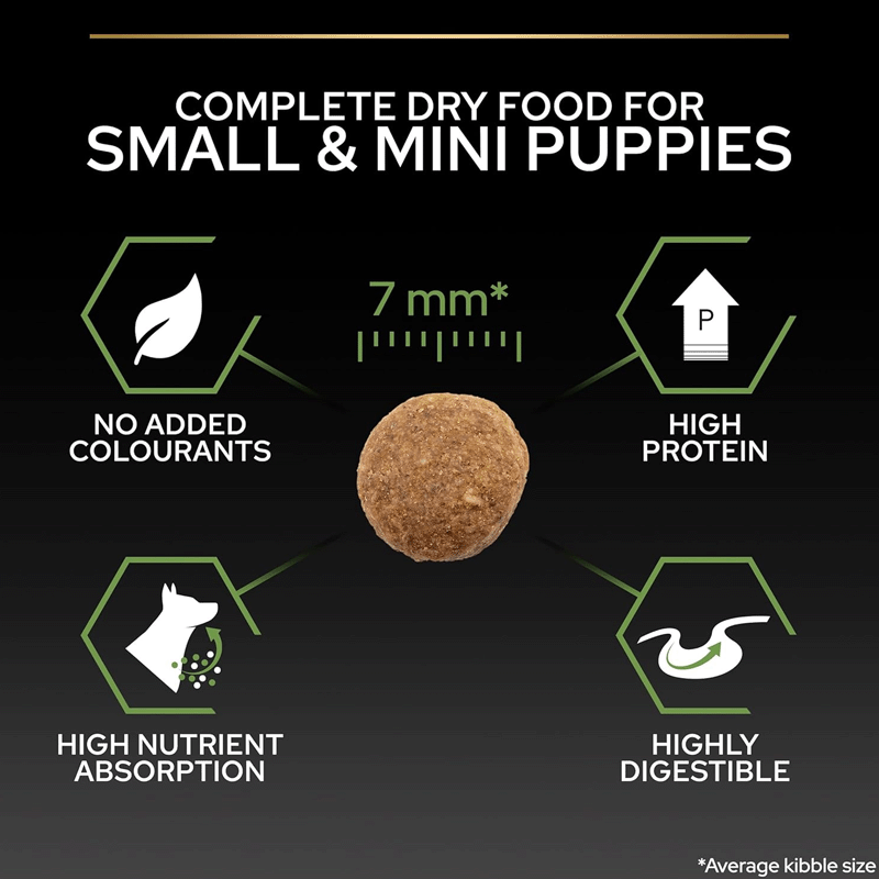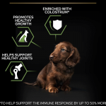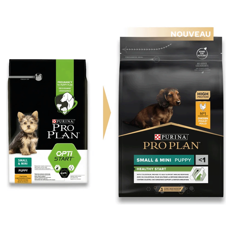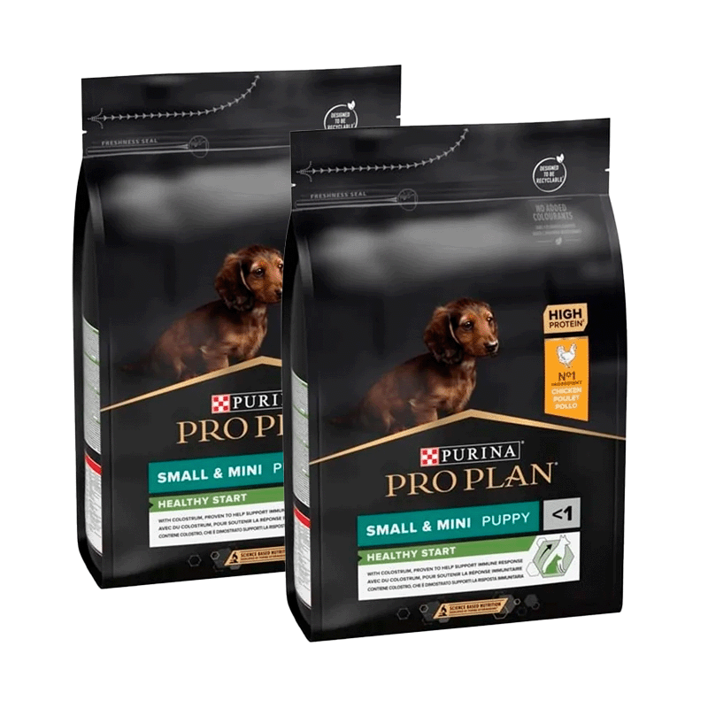 PURINA® PRO PLAN® Puppy Small & Mini Healthy Start se distingue par son ingrédient principal, le poulet. Cela offre non seulement une saveur délicieuse que les chiots adorent, mais garantit également une source de protéines de haute qualité, essentielle à la croissance et au développement sains des chiots de races petites et miniatures.