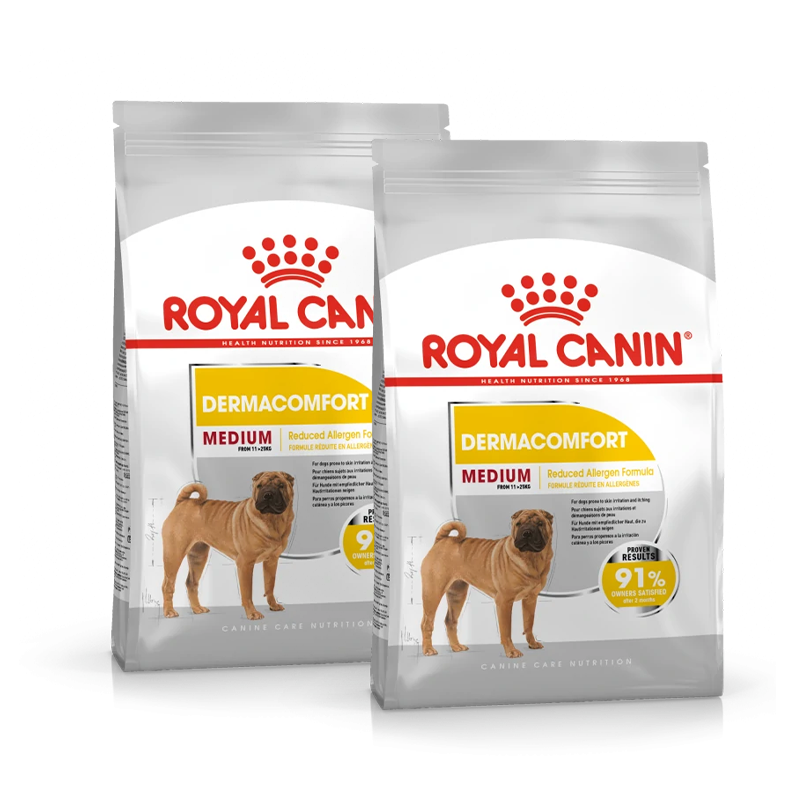 Royal Canin Medium Dermacomfort est la nourriture recommandée pour les chiens adultes et matures de races moyennes (11 à 25 kg) sujets à l'irritation cutanée et aux démangeaisons. Sa composition est idéale pour soulager ces symptômes chez votre animal de compagnie et améliorer visiblement la condition de la peau. Parce que être un super-héros n'est pas une tâche facile !