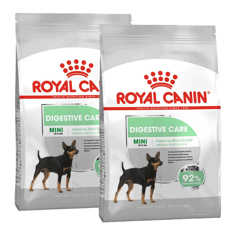 Prenez soin de la santé digestive de votre petit chien avec Digestive Care Mini de ROYAL CANIN®. Cette délicieuse recette, conçue pour les chiens pesant jusqu'à 10 kg, cible les troubles digestifs courants chez les petits chiens. La formule prend en compte la constipation fréquente chez les petits chiens en incluant un mélange de fibres qui équilibre la fermentation et améliore le transit intestinal.
