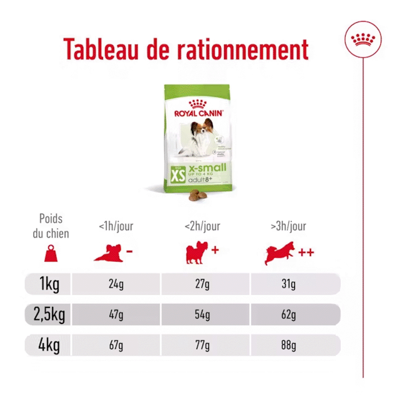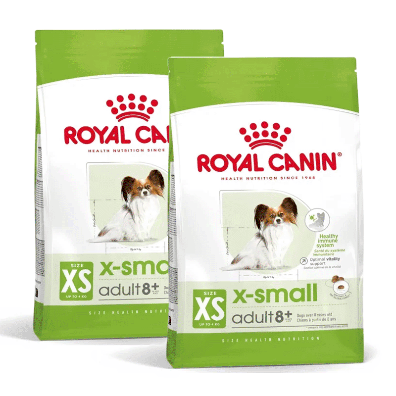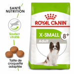 Royal Canin X-Small Mature +8 est une alimentation pour les races miniatures (poids adulte inférieur à 4 kg). Il est spécialement conçu pour les chiens de plus de huit ans, c'est-à-dire les chiens seniors. Ses croquettes sont sèches et au poulet, et votre chien les adorera. Il est destiné aux races miniatures telles que le Yorkshire, le Chihuahua, le Pékinois, etc.