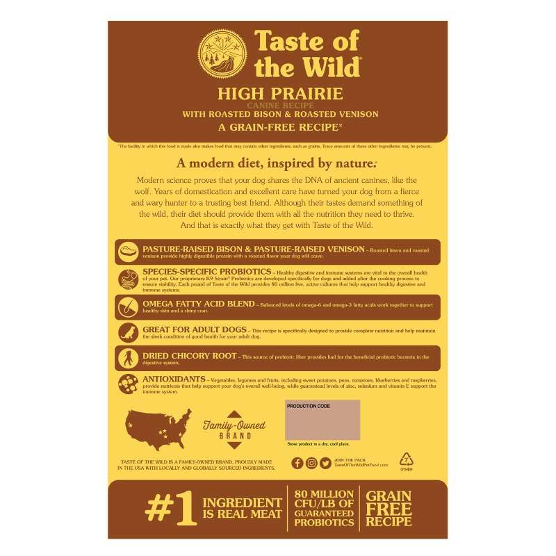 Taste of the Wild offre des protéines de qualité avec du bison et du cerf pour maintenir votre chien plein d'énergie.